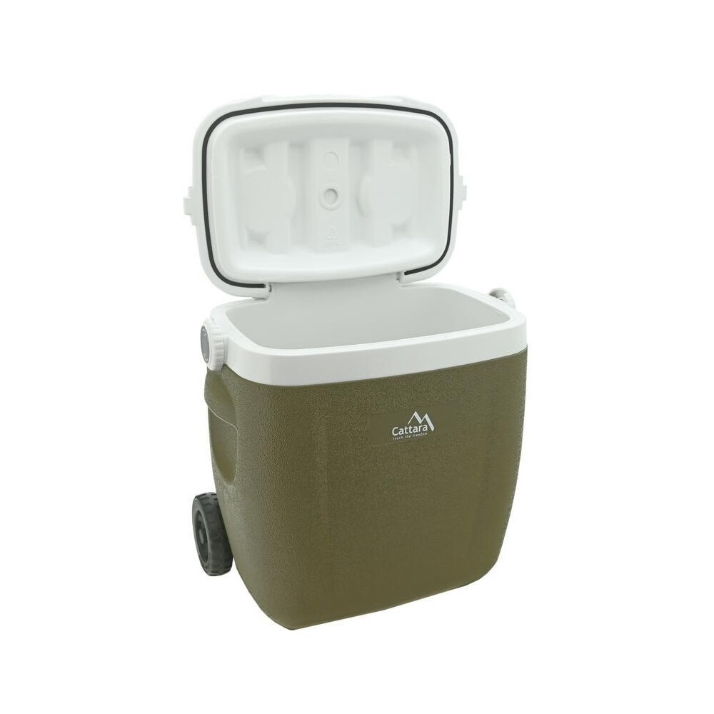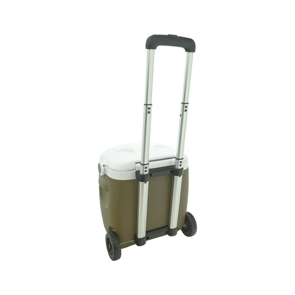 Konštrukcia je vyrobená z odolného plastu s ľahko umývateľným povrchom, ktorý zaisťuje dlhú životnosť a jednoduchú údržbu. Termobox je navyše vybavený teleskopickou rukoväťou a kolieskami pre pohodlnú manipuláciu aj pri plnom zaťažení.