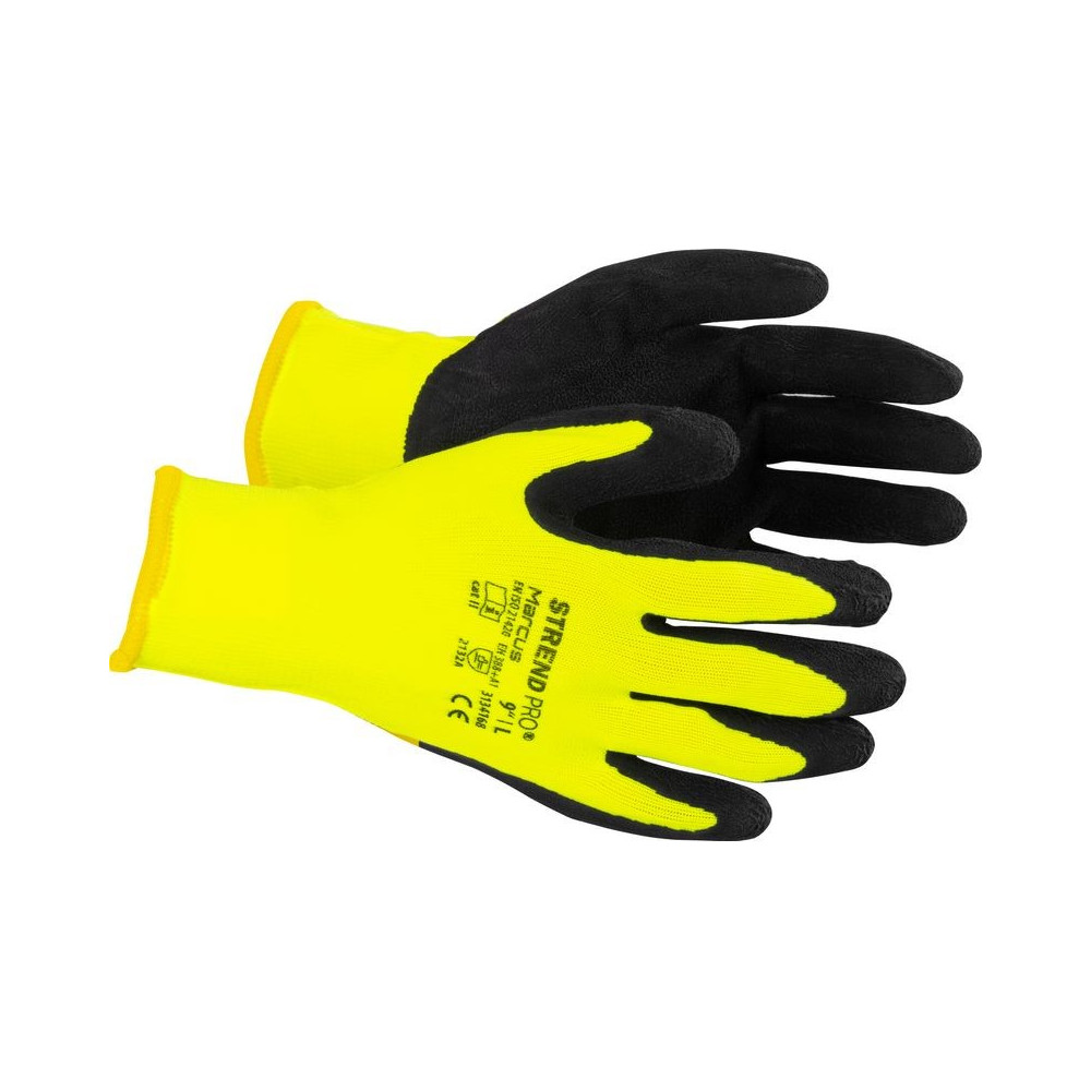 Rukavice Strend Pro Marcus sú pletené bezšvové polyamidové (nylonové) ochranné rukavice a sú potiahnuté vrstvou mikroporézneho paropriepustného latexu na dlani a prstoch. Majú pružný náplet na zápästí. Práca v týchto rukaviciach je komfortná, keďže sú priedušné, vodeodolné a poskytujú vynikajúci cit v prstoch. Sú určené na ochranu kože pred mechanickými rizikami, s úrovňou ochrany 2132A (podľa EN388: 2016+A1:2018). Veľkosť: 11"/XXL.