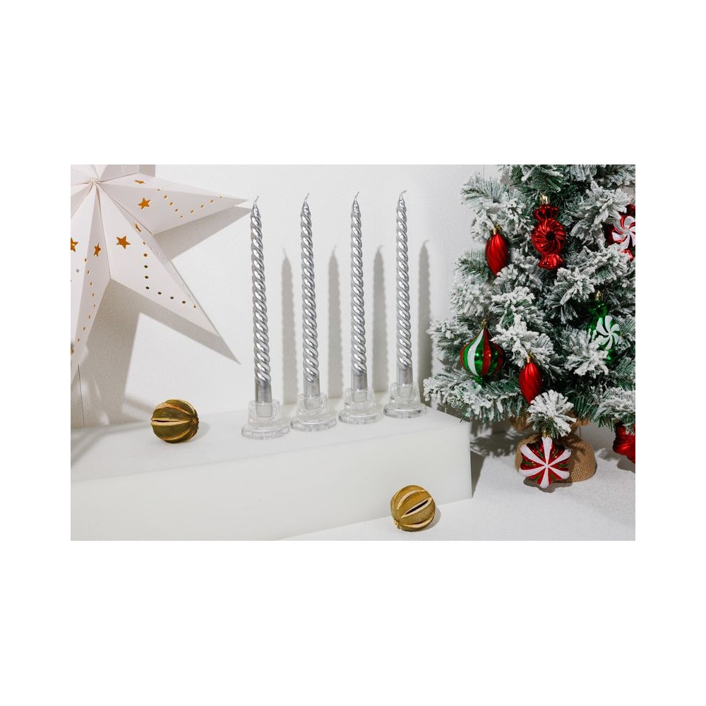 Sviečka MagicHome Vianoce, 25 cm, bal. 4 ks, strieborné,špirálové