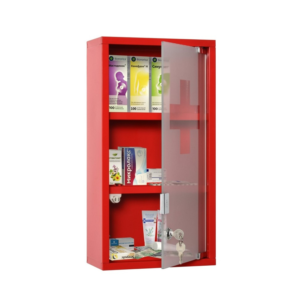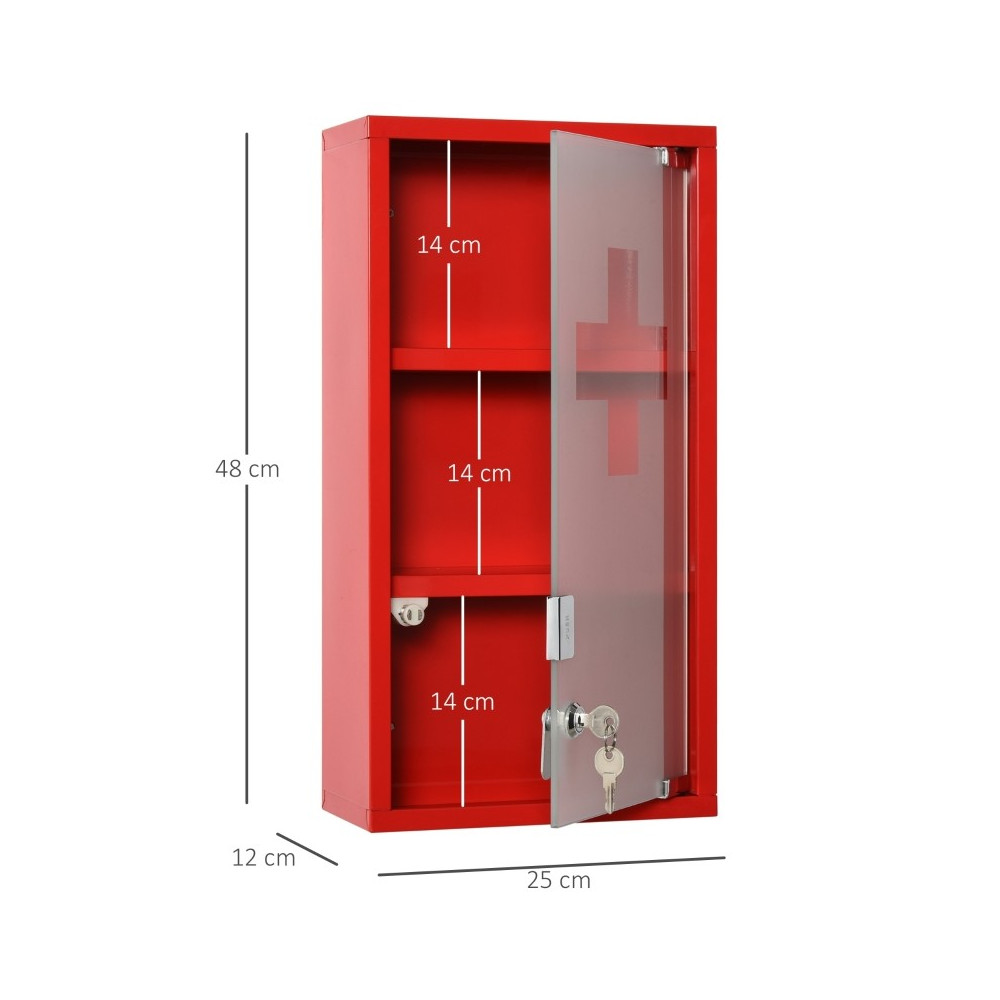 lekárnička so zámkom 3 priehradky kovová červená 25 x 12 x 48 cm