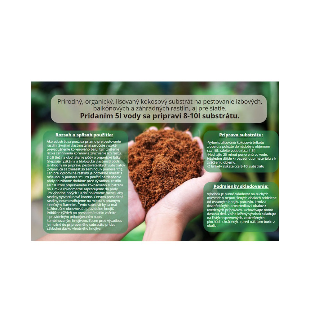 Kokosový substrát je prírodná, zlisovaná organická hmota, vhodná pre pestovanie izbových, balkónových a záhradných okrasných rastlín.