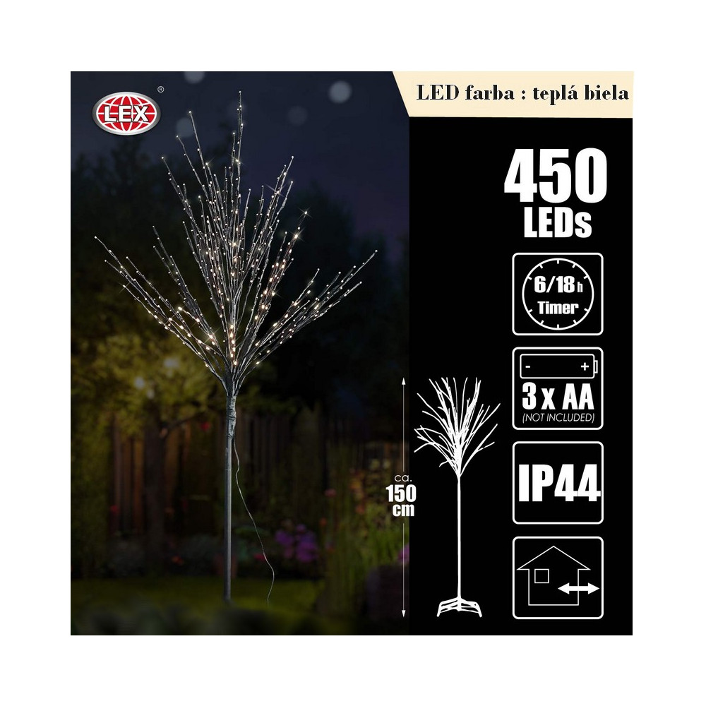 LED stromček, 450 LED diód, napájanie z batérií, teplá biela“