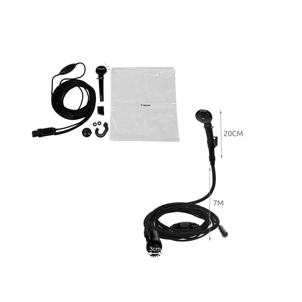 VŠESTRANNÉ POUŽITIE - Kempová sprcha sa nepoužíva len na umývanie tela. Ľudia, ktorí chodia kempovať, jej funkčnosť určite ocenia. Stačí ju zapojiť do zásuvky v aute a umožní vám sa pohodlne osprchovať - mnoho kempov ponúka sprchy, kde je prietok vody tak nízky, že bežný kúpeľ trvá asi dvanásť minút, čo znamená, že fronty sú obrovské! S našou sprchou si môžete nastaviť silu prúdu. Produkt vám tiež umožní umývať riad, oplachovať auto, prať nafukovacie hračky a mnoho ďalších aktivít. Sada obsahuje tašku so sťahovacou šnúrkou, ktorú je možné použiť ako nádrž na vodu alebo ako kryt.