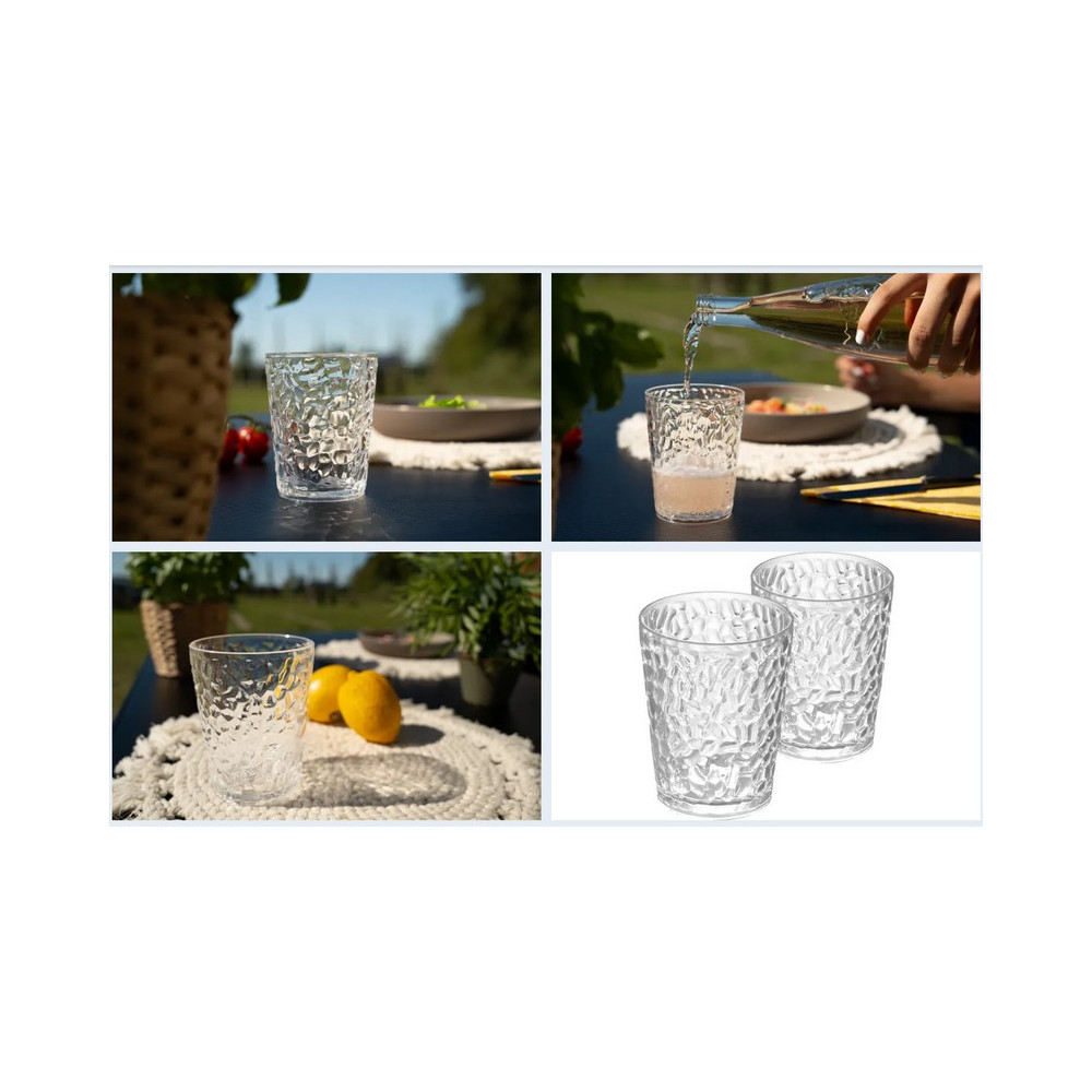Tieto praktické poháre na pitie sú ideálne na kempovanie, pikniky alebo do záhrady. Vyrobené z nerozbitného akrylátu, ponúkajú vysoko kvalitný vzhľad skla a zároveň sú ľahké, pevné a ideálne na vonkajšie použitie.