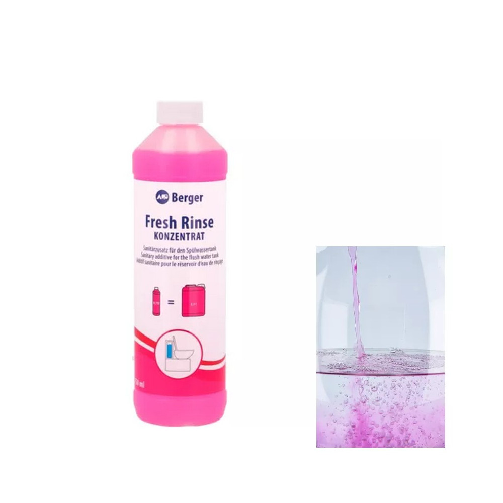Berger Fresh Rinse je vysoko účinný, dvojito koncentrovaný, sviežo parfumovaný prostriedok na splachovanie nádržky kazetových a kempingových toaliet. Zabraňuje usadzovaniu vodného kameňa a zaisťuje účinnejšie a konzistentnejšie splachovanie. Vďaka koncentrátu je fľaša ľahšia, no zároveň poskytuje rovnaký výkon ako naša 2,5-litrová fľaša.