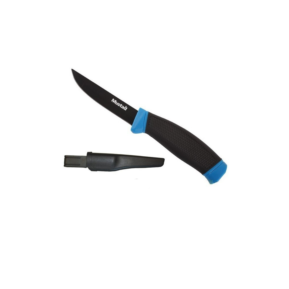 Kvalitný a veľmi oblúbený rybársky nôž značky Mustad ktorý má všestranné využitie . Čepel noža je potiahnutá teflónovým povrchom , Rukoväť noža má protišmikovú úpravu . Nôž vhodý pre rybárov, turistov, polovníkov . Súčastou noža je aj praktické púzdro s pripintelným klipom na opasok
