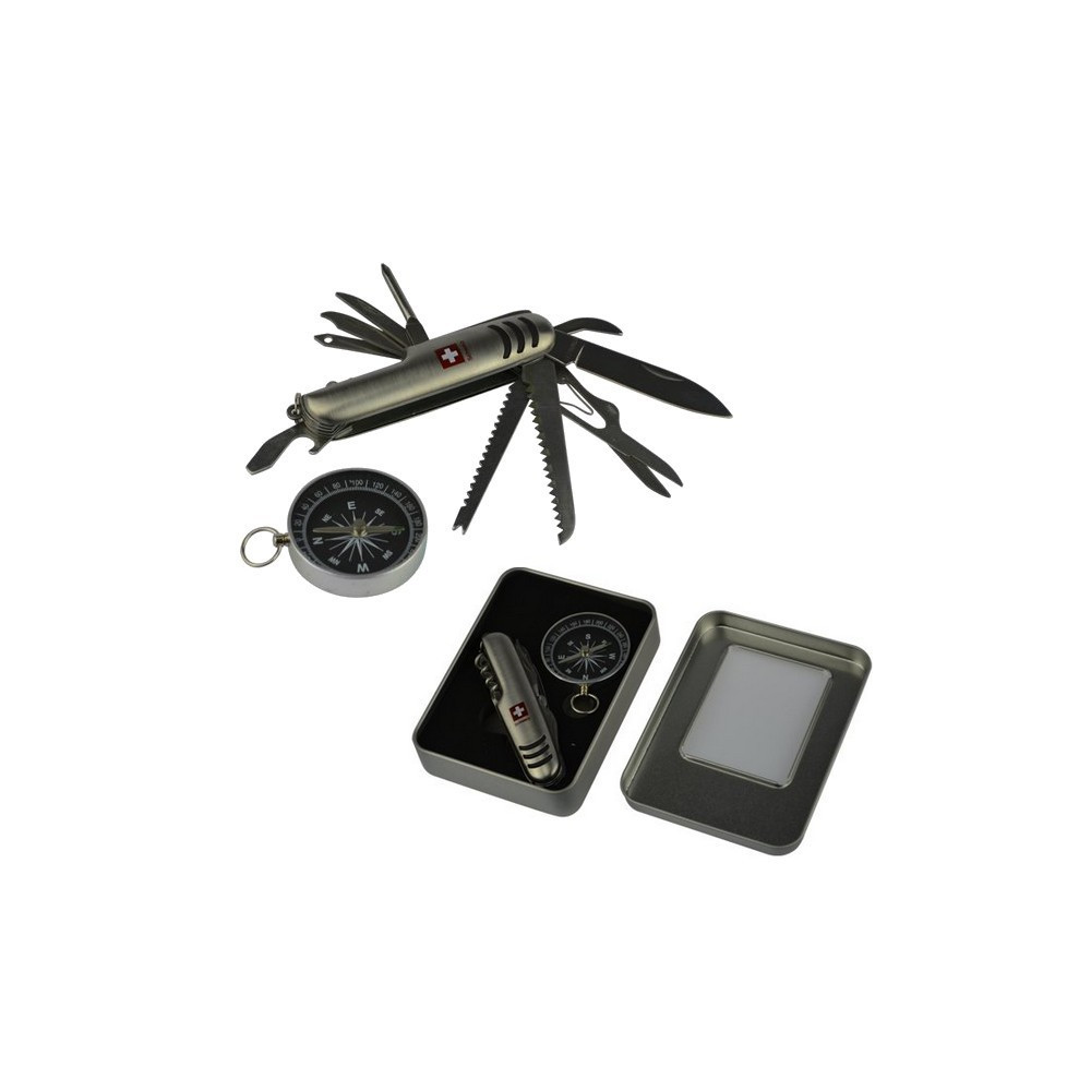 Praktický vreckový nožík s 11 funkciami vyrobený z nehrzavujúcej ocelel so Švajčiarským logom splu s kompasom v darčkovom balení . Pekný praktický darček ktorý poteši .