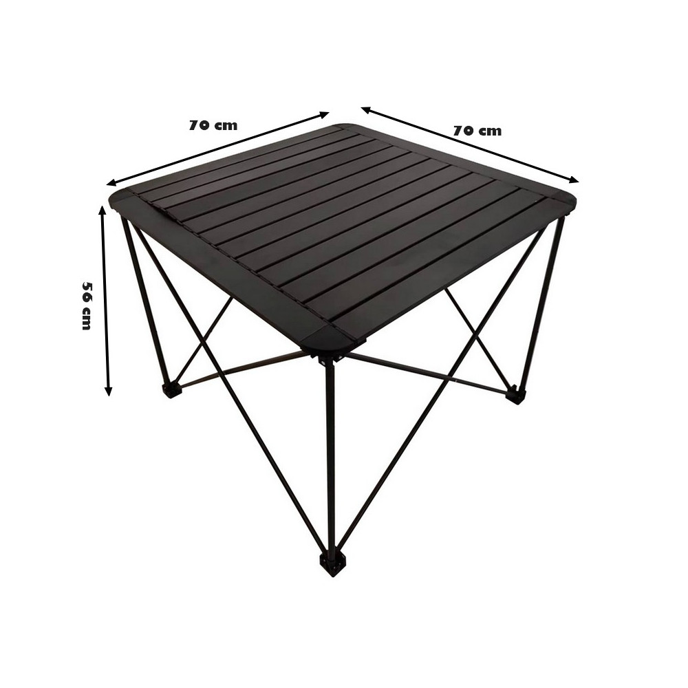 Ľahko prenosný kempingový stôlrozmerom 70x50x59 cm cm s praktickou rukoveťou na prenášanie