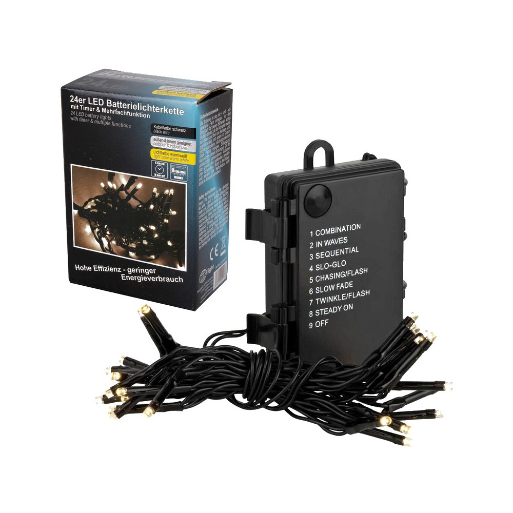 LED batériová 24 LED -svetelná reťaz s časovačom a viacerými funkciami