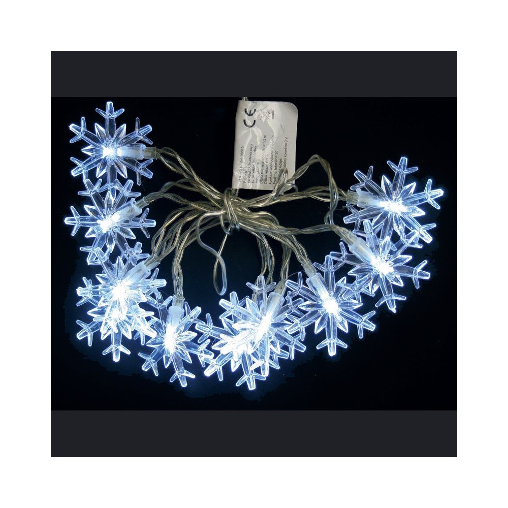 Reťaz nowFlake, 10 LED studená biela 2xAA, IP20, interiér - L-0,90 m
